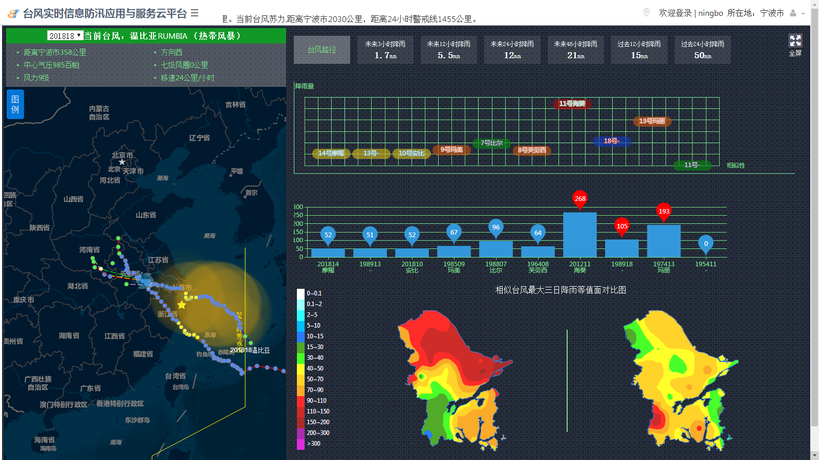 平臺以水行業(yè)對于氣象的需求而誕生的,匯集國內(nèi)外主流氣象機構(gòu)的數(shù)值預報,通過大數(shù)據(jù)、云計算、空間分析以及專業(yè)模型技術(shù),實現(xiàn)天氣實況全掌握、未來降雨全面展現(xiàn)、分析簡報快速生成、預報降雨智能評估、數(shù)據(jù)大屏個性化定制,平臺不僅解決了未來降雨的時間分配,還解決了水利要素的時空分配,為防汛應急等相關提供科學的數(shù)據(jù)支撐,也為模型計算提供準確的邊界條件,提高結(jié)果精度。