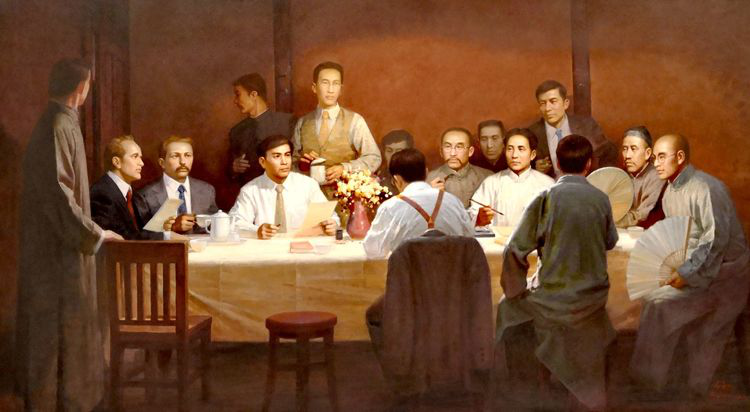 7月23日晚,中國(guó)共產(chǎn)黨第一次全國(guó)代表大會(huì)在上海法租界望志路106號(hào)(今興業(yè)路76號(hào))正式開幕。會(huì)址設(shè)在李書城、李漢俊兄弟住宅,大家圍坐在客廳長(zhǎng)餐桌四周,室內(nèi)沒(méi)有特別布置,陳設(shè)簡(jiǎn)單,氣氛莊重。出席者有上海的李漢俊、李達(dá);北京的張國(guó)燾、劉仁靜;長(zhǎng)沙的毛澤東、何叔衡;武漢的董必武、陳潭秋;濟(jì)南的王盡美、鄧恩銘;廣州的陳公博;留日學(xué)生周佛海以及陳獨(dú)秀委派的包惠僧。陳獨(dú)秀和李大釗因公務(wù)在身未出席會(huì)議,而在代表們心目中他們?nèi)允屈h的主要?jiǎng)?chuàng)始人和領(lǐng)袖。
