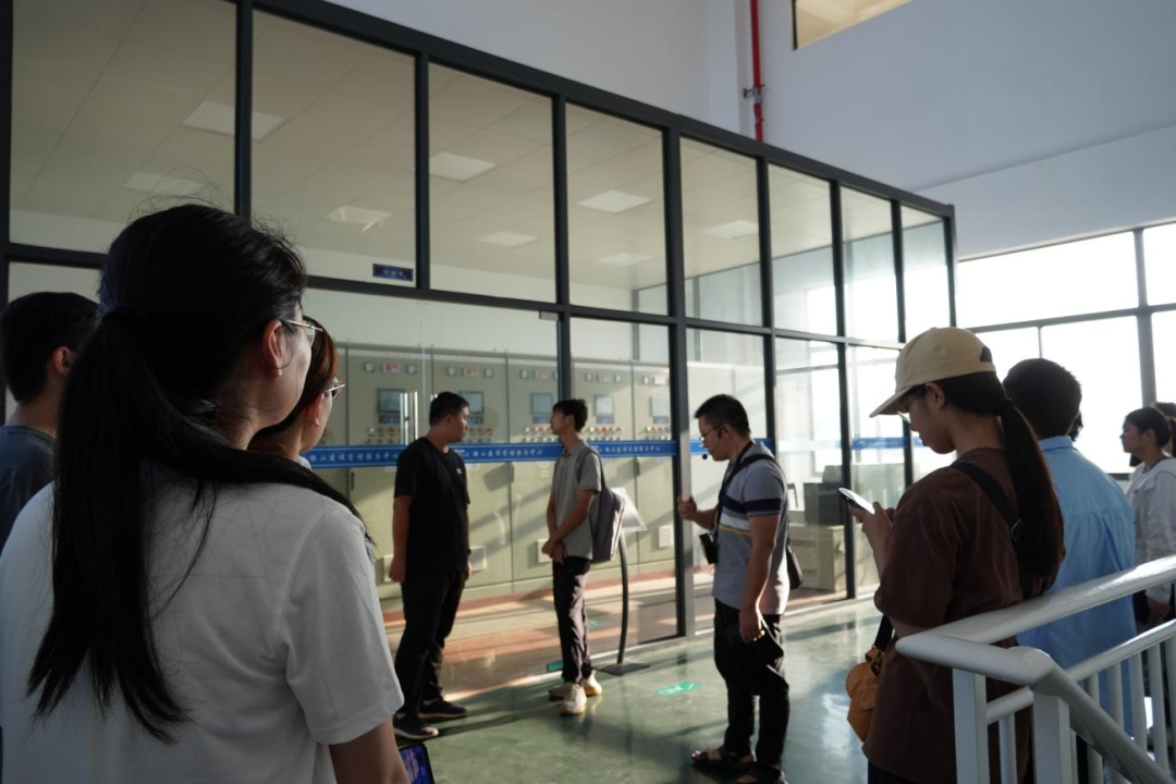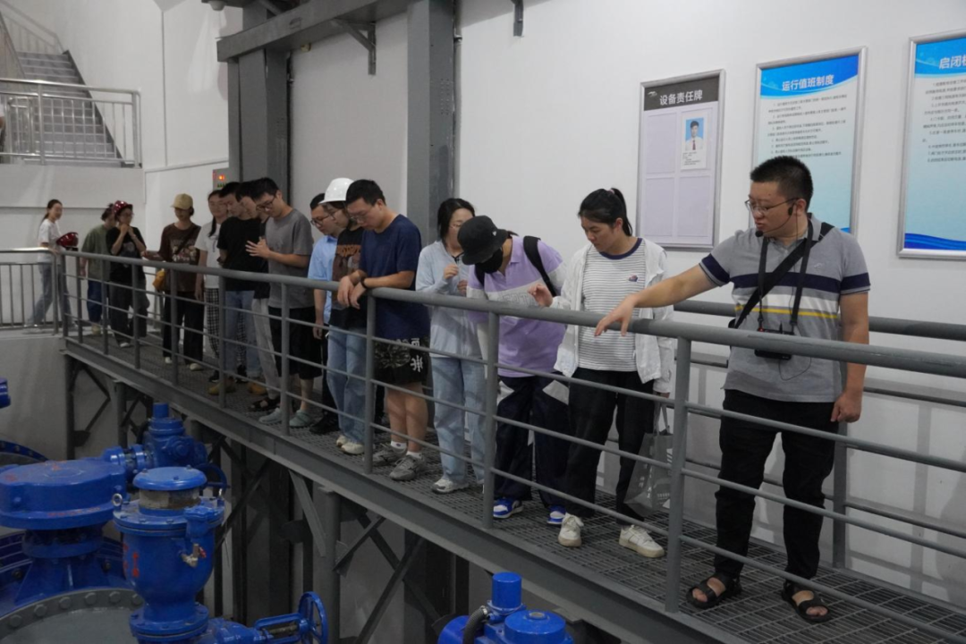 最后,研學(xué)隊(duì)伍來到北堤樞紐參觀。該工程榮獲中國建筑行業(yè)工程質(zhì)量的最高榮譽(yù)獎(jiǎng)——2020-2021年度第一批中國建設(shè)工程魯班獎(jiǎng)。胡經(jīng)理帶領(lǐng)研學(xué)隊(duì)伍依次進(jìn)入啟閉機(jī)房、觀景臺、控制室等處,現(xiàn)場講解工程設(shè)計(jì)思路、建造工藝和管理要點(diǎn)。