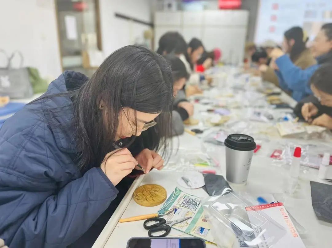 活動當(dāng)天,女職工們按時到達(dá)活動教室,發(fā)揮巧思,施展妙手,或是“掐絲、剪絲、上砂、上膠”,或是“測量、造型、印刻、拋光”,或是“和面、打發(fā)、烘烤、裝點(diǎn)”,解鎖了一系列全新的體驗(yàn),收獲了節(jié)日的快樂和美好。