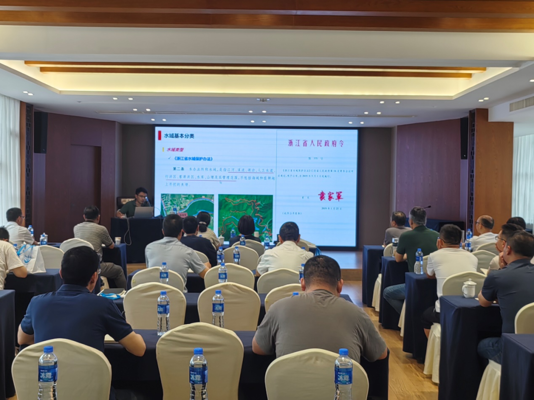 培訓(xùn)現(xiàn)場,我院規(guī)劃四所所長楊益青憑借其扎實的學(xué)術(shù)功底與豐富的實踐經(jīng)驗,生動呈現(xiàn)了海曙區(qū)這一歷史與現(xiàn)代交融之地的水文畫卷。他從水域基本分類出發(fā),清晰介紹劃分區(qū)內(nèi)河道、湖泊、水庫、山塘等各類水域,為參訓(xùn)人員構(gòu)建起海曙區(qū)水系結(jié)構(gòu)基本框架;隨后,依托《海曙區(qū)水域調(diào)查》的研究成果,系統(tǒng)介紹了當(dāng)前水域的分布情況、水域功能等關(guān)鍵信息,并緊扣《海曙區(qū)水域保護規(guī)劃》,深入淺出地闡述了未來水域的規(guī)劃布局。最后依托我院在該領(lǐng)域的最新技術(shù)和成功案例,結(jié)合水域歷史演變及近期變化,分享我院在水域管理保護方面的典型辦法和先進舉措。